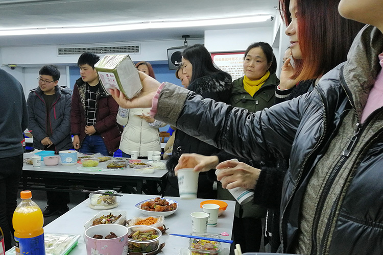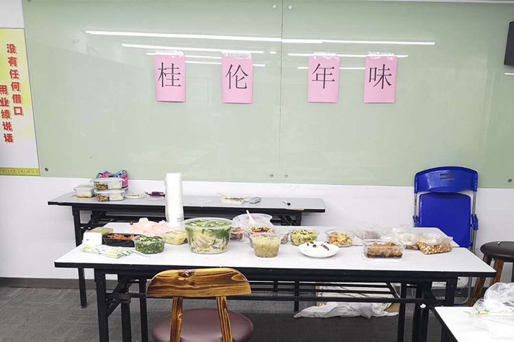 桂倫的各位同仁來自五湖四海,有來自東北、安徽、湖北、福建、江蘇、上海等等,看著那一道道代表著家鄉(xiāng)特有的菜肴,大家井然有序排起了長龍,圍繞著美食,邊走邊吃,時不時有同事拍照留念,這一幕溫暖而又開心的瞬間定格在那一刻。