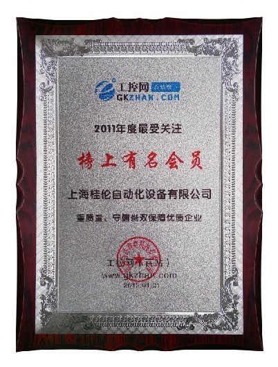 中國工控展覽網(wǎng)(工控網(wǎng))是工控自動化行業(yè)的門戶網(wǎng)站,在工控行業(yè)網(wǎng)站中有著很大的影響力,擁有達(dá)22萬人次的注冊會員,每日的訪問量巨大。上海桂倫自動化設(shè)備有限公司是專業(yè)從事工業(yè)自動化產(chǎn)品銷售的供應(yīng)商,工控網(wǎng)的橫空出世,給了上海桂倫一個全面展示優(yōu)勢產(chǎn)品的平臺。2011年度,上海桂倫在工控網(wǎng)榮獲了一項重要殊榮——“重質(zhì)量守信譽(yù)”工控網(wǎng)榜上有名會員。